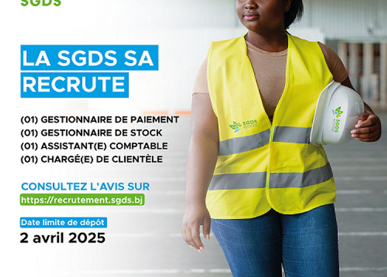 La date limite de dépôt des dossiers est le 02 avril 2025. Quels sont les objectifs, missions ainsi que les profils recherchés par poste ? Où et comment postuler ? Quelles sont les pièces à fournir ? Les réponses à toutes ces questions sont disponibles dans l’avis de recrutement. Vous pouvez consulter l’avis de recrutement en ligne sur la plateforme de recrutement de la SGDS (https://recrutement.sgds.bj/ ) ou cliquer ICI pour le télécharger en version PDF.